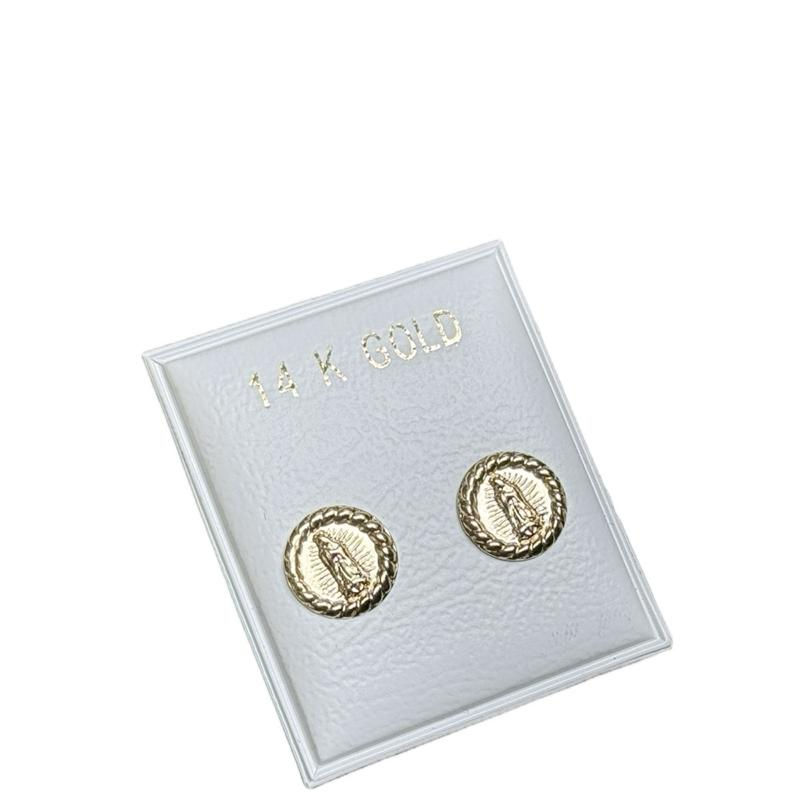 14K Gold Virgencita a Earrings with Detailed Virgin Mary Design and Polished Fin